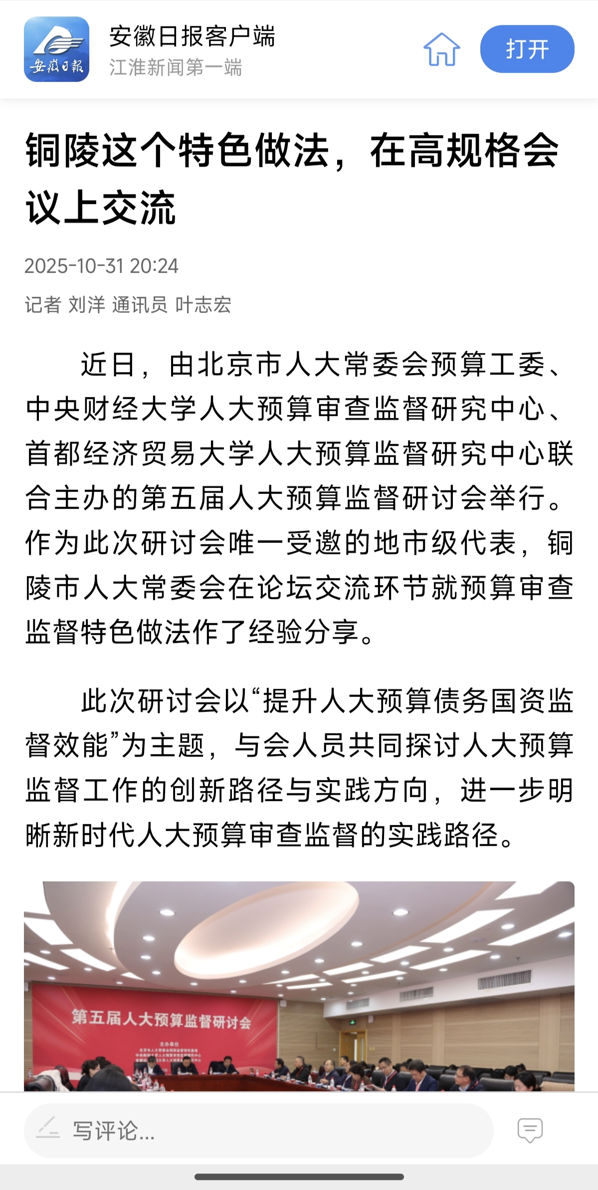 以会为媒,分享成果、借鉴经验。记者获悉,铜陵市人大常委会将认真吸纳各地优秀实践成果,推动预算审查监督从“程序监督”向“实质监督”深化;同时,积极探索与北京高校、科研机构的合作路径,把基层实践经验转化为制度成果,让人大监督真正扎根群众、服务发展。