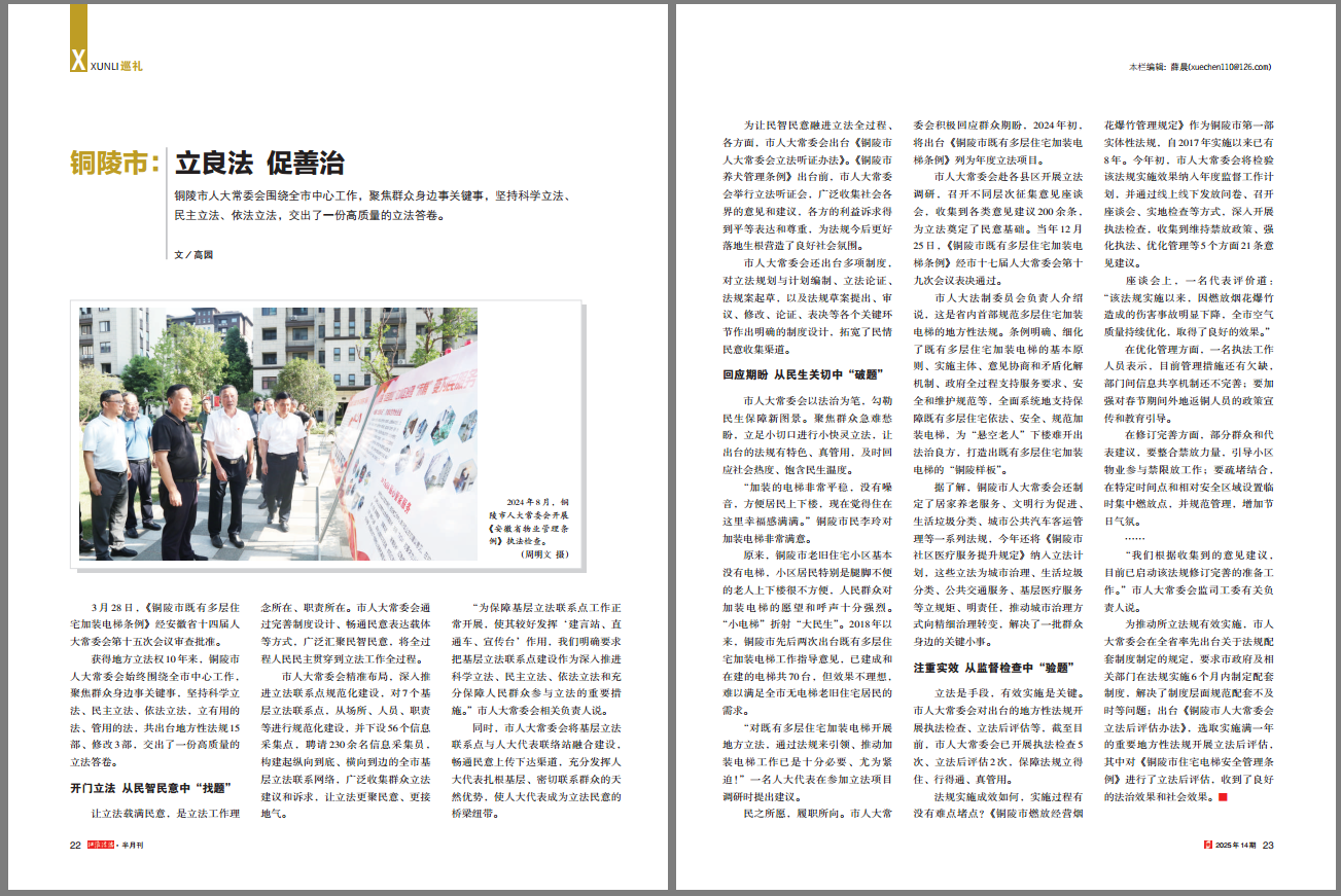《江淮法治》:立良法 保善治 惠民生——铜陵市人大常委会在“开门立法”与“闭环问效”中书写民生答卷