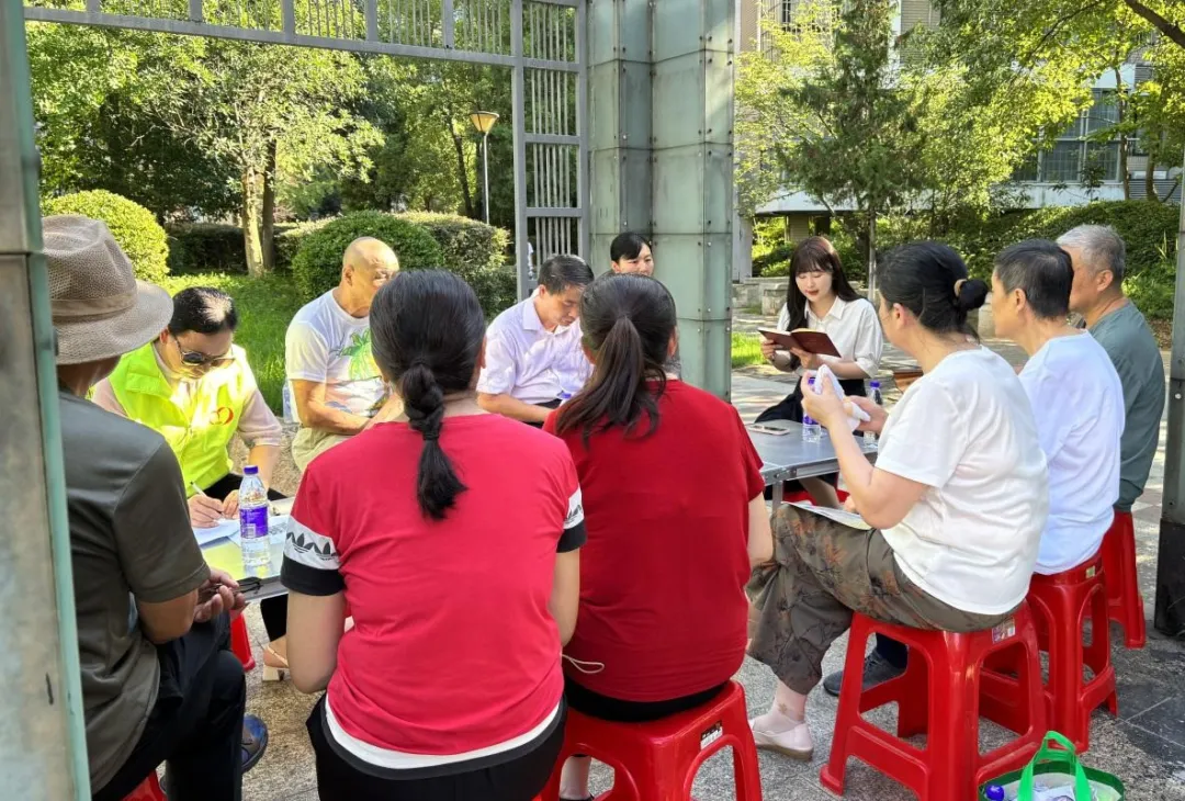 (2025年8月,新城办柳园社区在五环国际小区议事亭召开“党建引领一键直达”电梯加装协商会现场。)