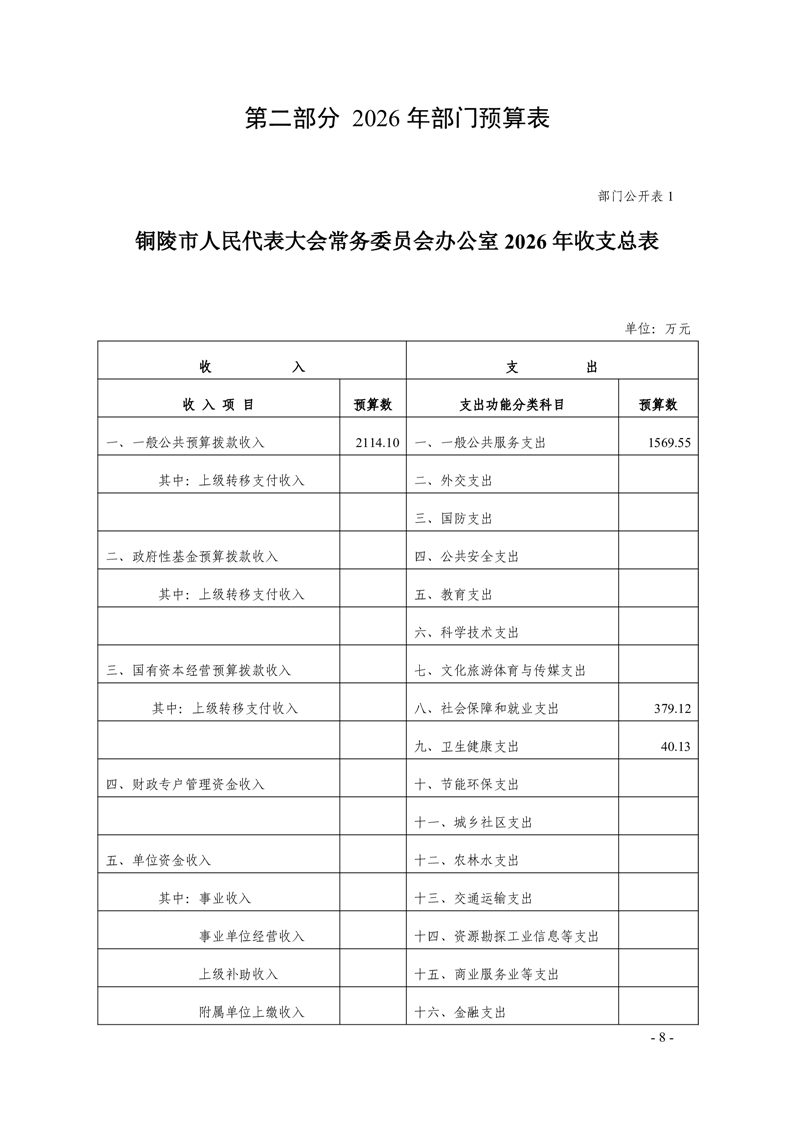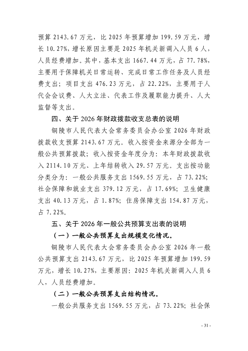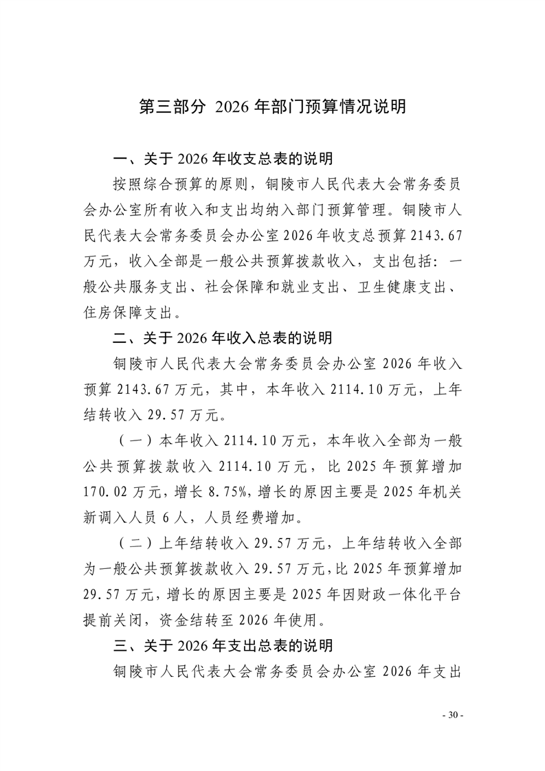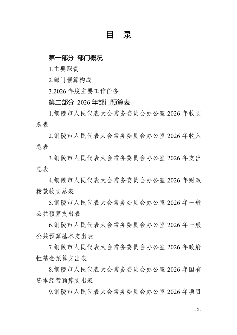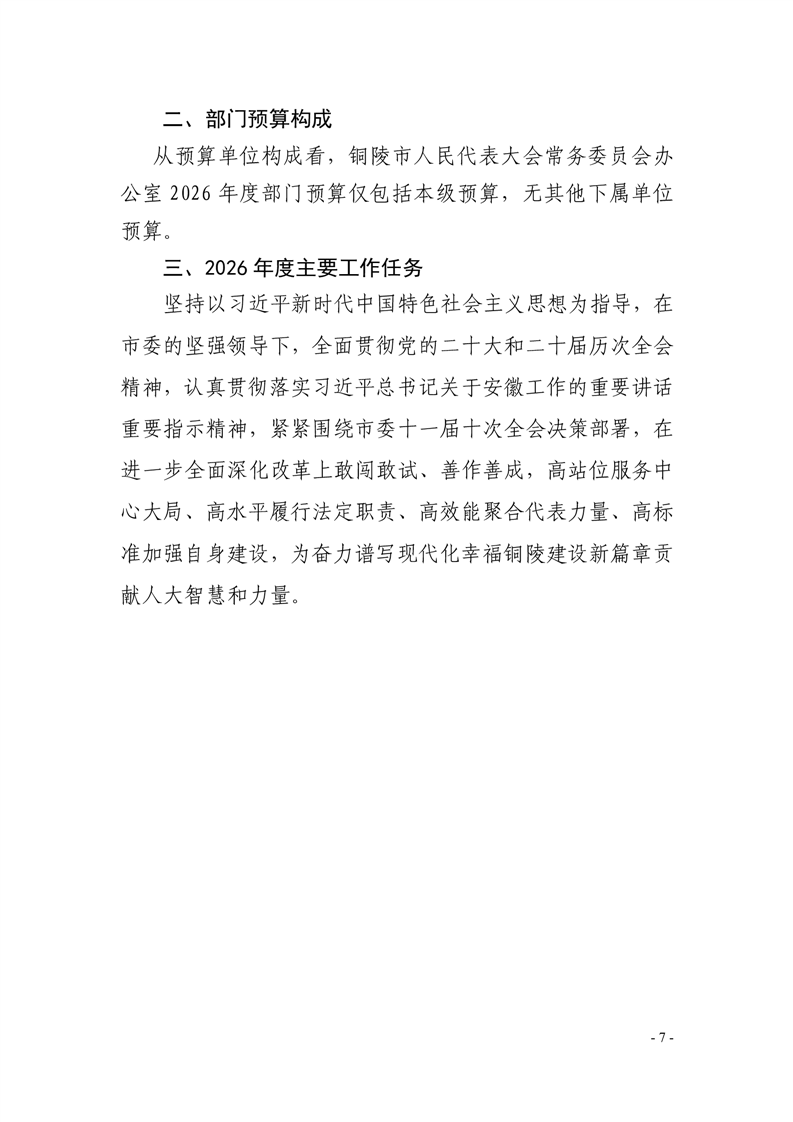 铜陵市人民代表大会常务委员会办公室2026年部门预算