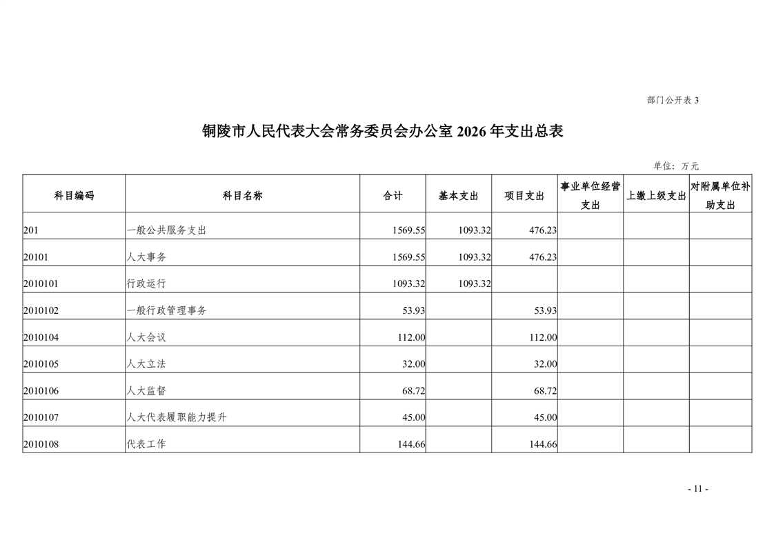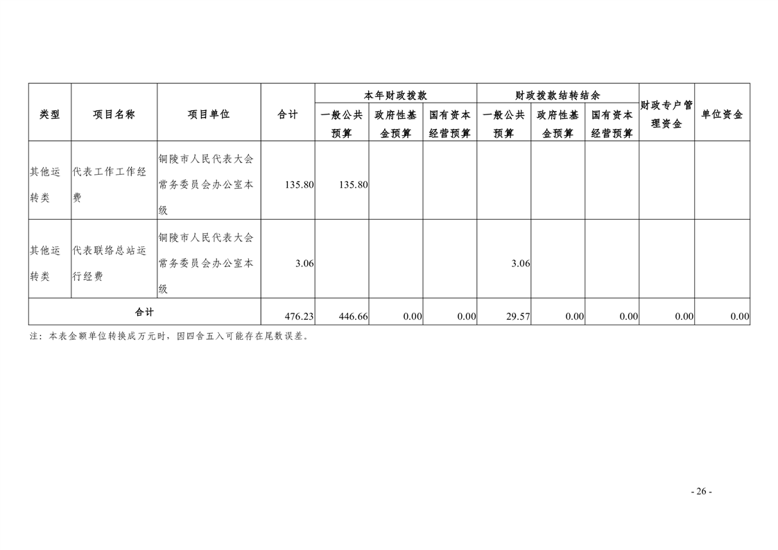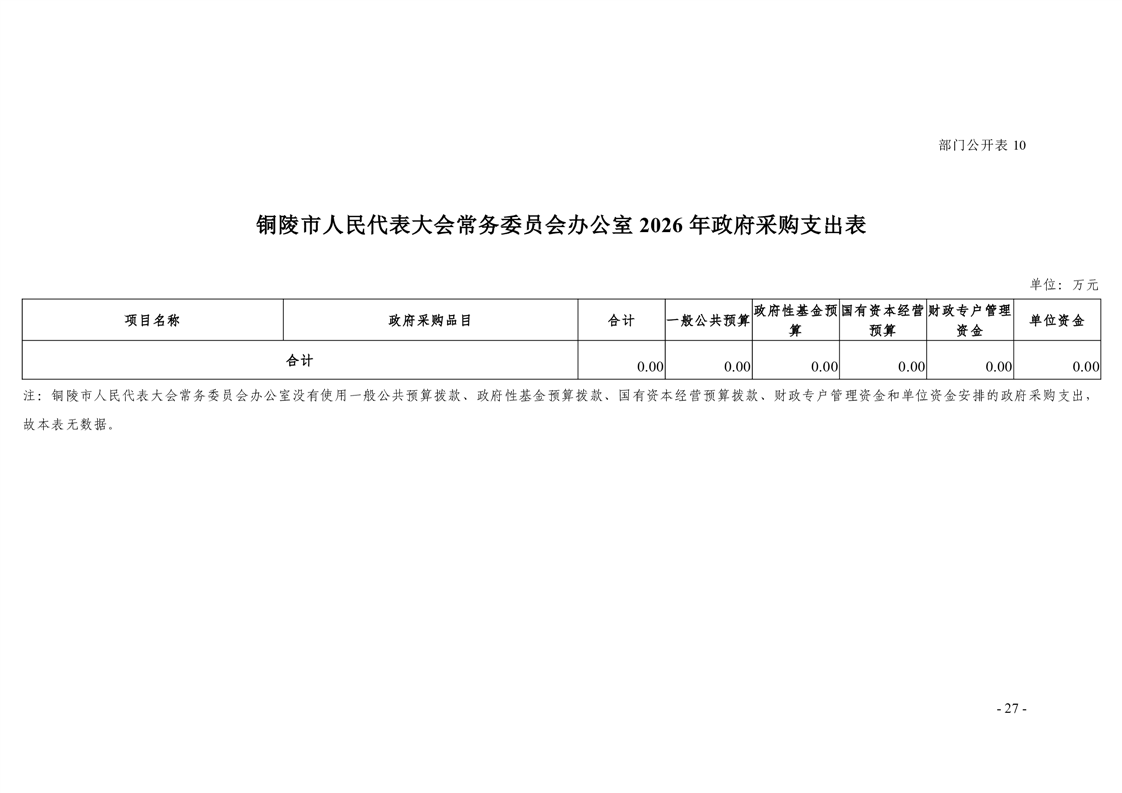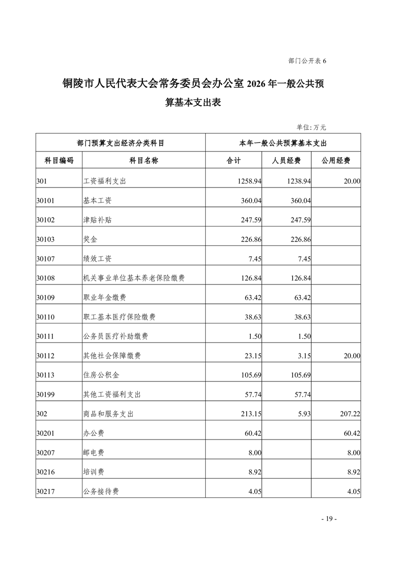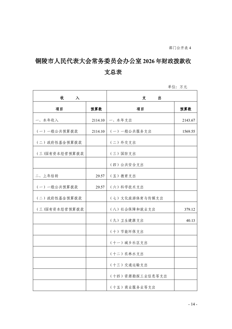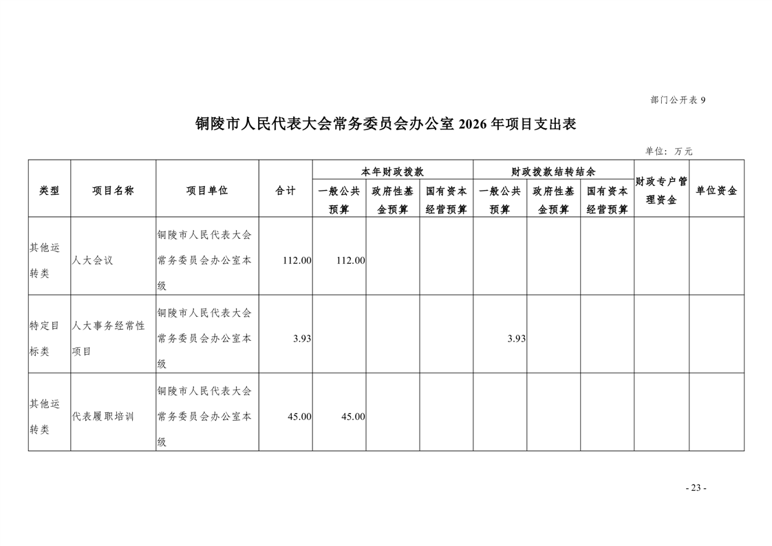 铜陵市人民代表大会常务委员会办公室2026年部门预算