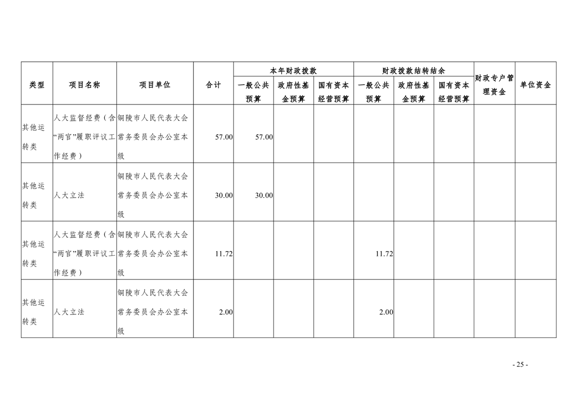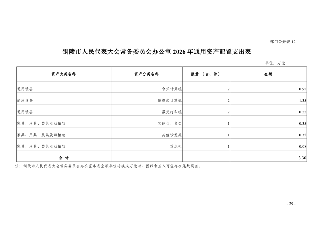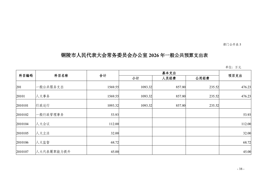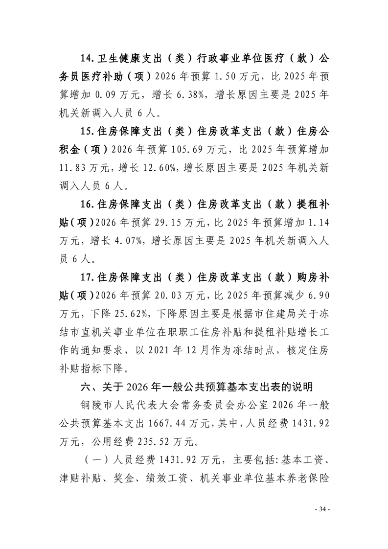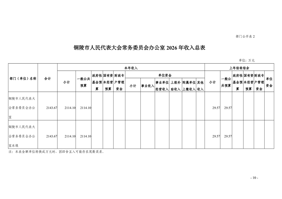 铜陵市人民代表大会常务委员会办公室2026年部门预算